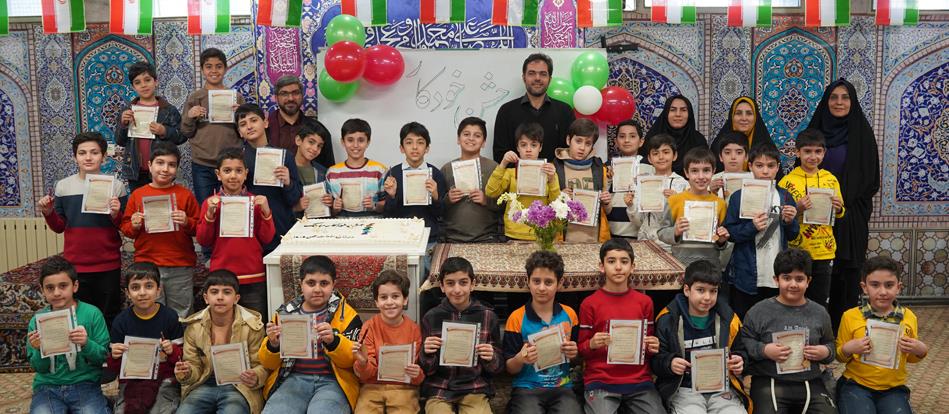 در این برنامه دانش آموزان هر کلاس در ایام دهه مبارک فجر، از ساعت 13 الی 16 در مدرسه حضور داشتند بچه ها نماز ظهر را به جماعت خواندند و پس از آن در کتابخانه یک ریسه پرچم ایران
