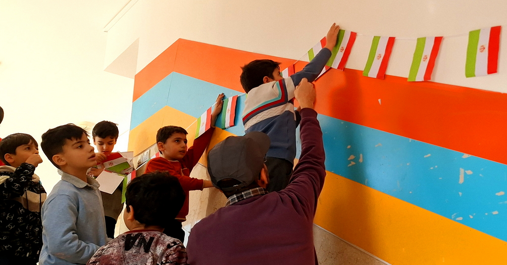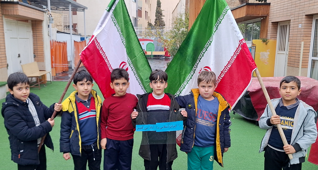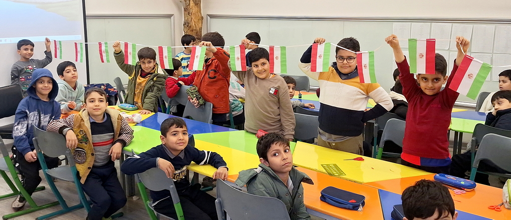 در این برنامه دانش آموزان هر کلاس در ایام دهه مبارک فجر، از ساعت 13 الی 16 در مدرسه حضور داشتند بچه ها نماز ظهر را به جماعت خواندند و پس از آن در کتابخانه یک ریسه پرچم ایران ، درست کردند و در کنار کلاسشون نصب نمودند در ادامه برنامه ، دانش آموزان با کمک معاونین و آموزگار محترم، ناهارشون را به همراه سالاد ، با دستای خودشون آماده کردند حالا دیگه نوبت بازی نقشه گنج بود... بچه های هر گروه باید در این بازی گنج هایی که در نقاط مختلف حیاط پنهان شده بود را پیدا می کردند ، گنج ها کلماتی بودند که باید باهاشون جمله می ساختند و گروهی که جمله ی خودش را حدس میزد ، پرچم پر افتخار ایران را به اهتزار در می آورد و با شور و هیجان در حیاط مدرسه می چرخاندند :