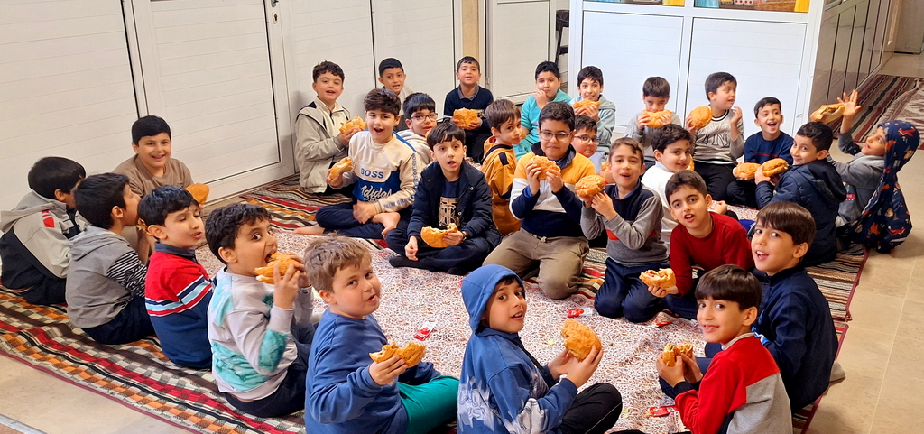 در این برنامه دانش آموزان هر کلاس در ایام دهه مبارک فجر، از ساعت 13 الی 16 در مدرسه حضور داشتند بچه ها نماز ظهر را به جماعت خواندند و پس از آن در کتابخانه یک ریسه پرچم ایران