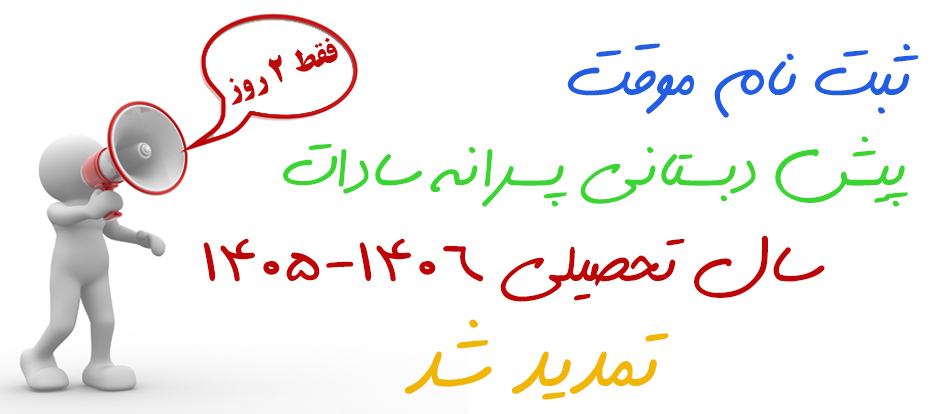 ثبت نام موقت پیش دبستانی پسرانه سادات - سال تحصیلی 1406-1405