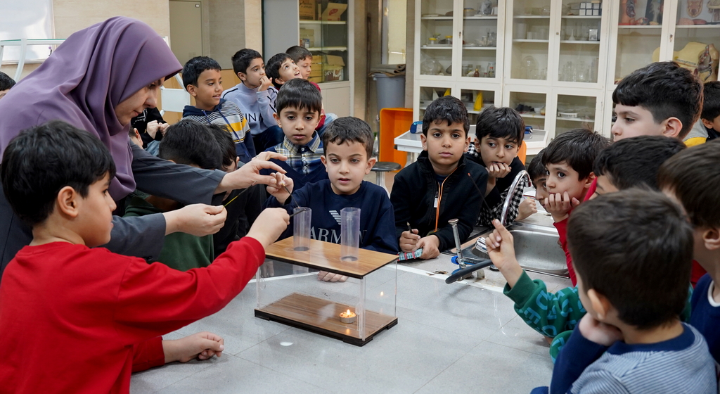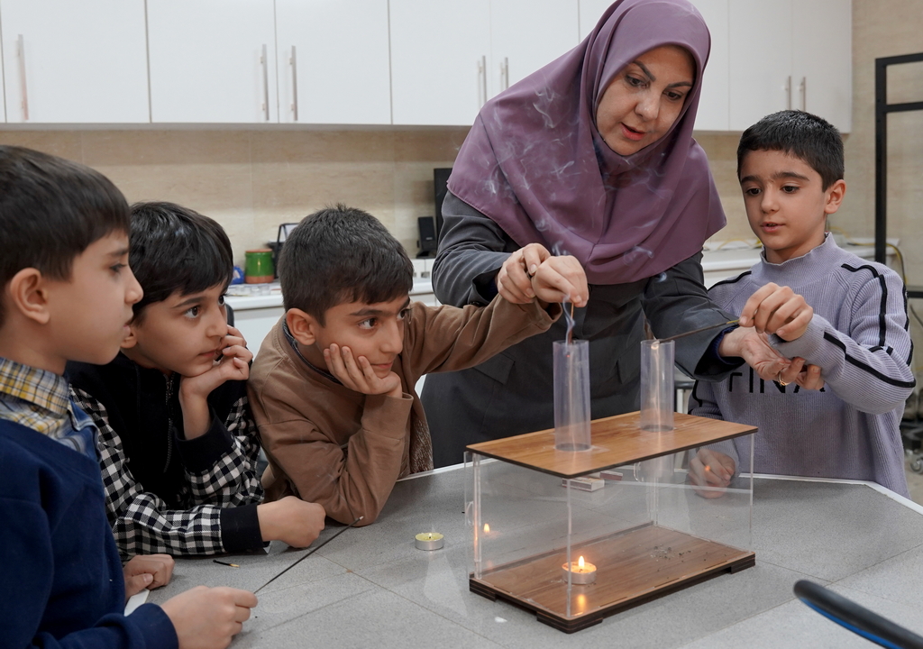 ر این آزمایش، دانشآموزان به صورت عملی مشاهده کردند که باد چگونه به وجود میآید. با روشن کردن شمع در زیر یکی از دودکشهای اتاقک شیشهای، هوای آن قسمت گرم شد ...