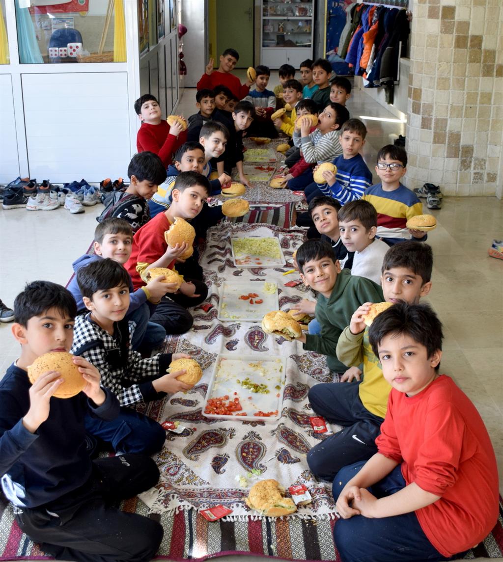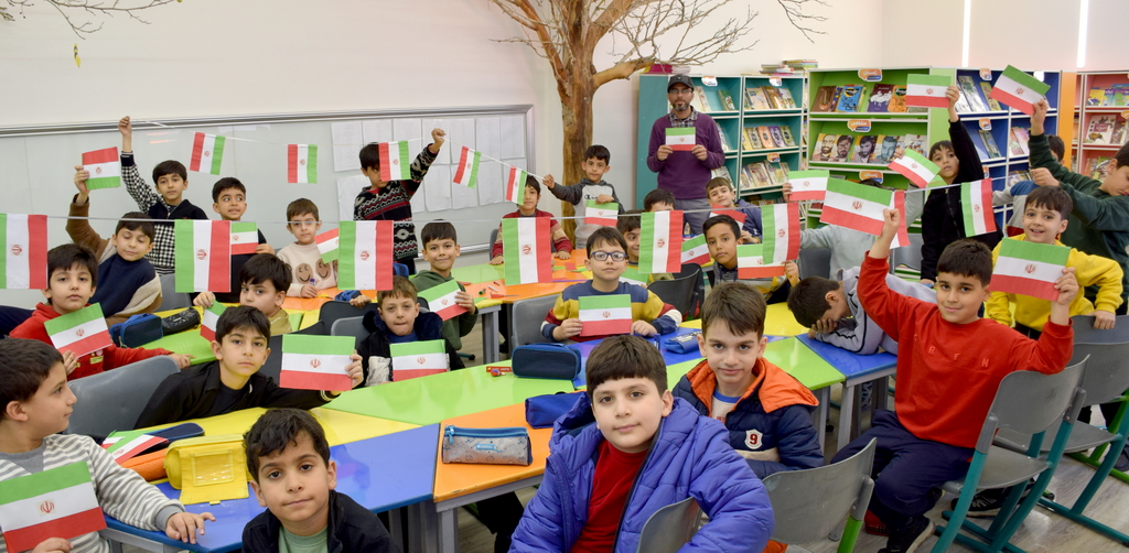 در این برنامه دانش آموزان هر کلاس در ایام دهه مبارک فجر، از ساعت 13 الی 16 در مدرسه حضور داشتند بچه ها نماز ظهر را به جماعت خواندند و پس از آن در کتابخانه یک ریسه پرچم ایران