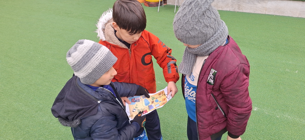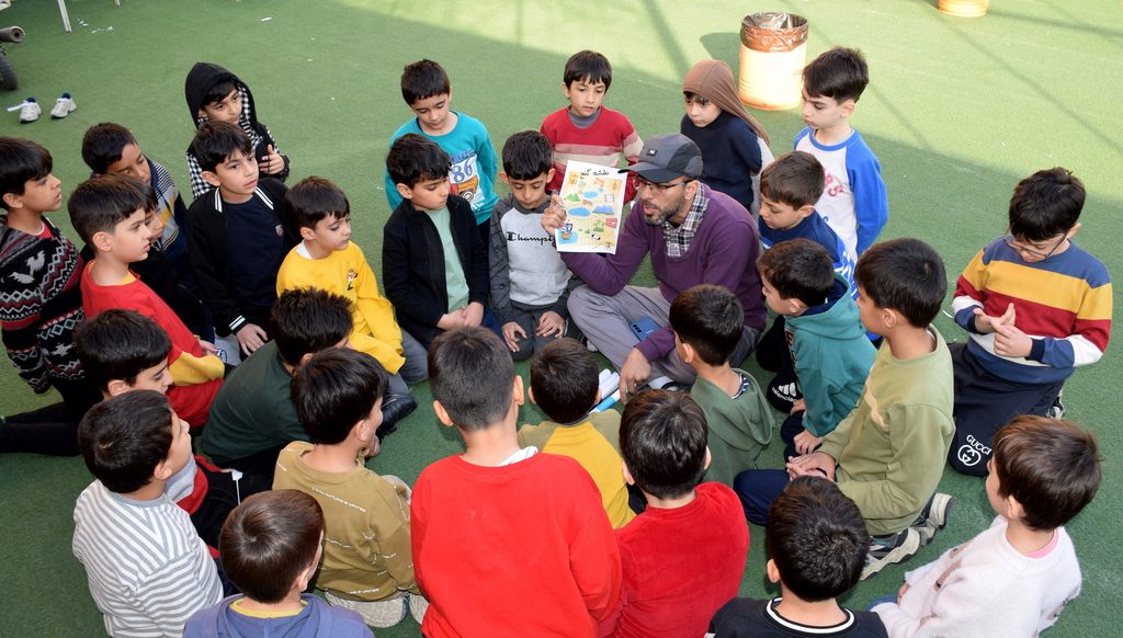 در این برنامه دانش آموزان هر کلاس در ایام دهه مبارک فجر، از ساعت 13 الی 16 در مدرسه حضور داشتند بچه ها نماز ظهر را به جماعت خواندند و پس از آن در کتابخانه یک ریسه پرچم ایران ، درست کردند و در کنار کلاسشون نصب نمودند در ادامه برنامه ، دانش آموزان با کمک معاونین و آموزگار محترم، ناهارشون را به همراه سالاد ، با دستای خودشون آماده کردند حالا دیگه نوبت بازی نقشه گنج بود... بچه های هر گروه باید در این بازی گنج هایی که در نقاط مختلف حیاط پنهان شده بود را پیدا می کردند ، گنج ها کلماتی بودند که باید باهاشون جمله می ساختند و گروهی که جمله ی خودش را حدس میزد ، پرچم پر افتخار ایران را به اهتزار در می آورد و با شور و هیجان در حیاط مدرسه می چرخاندند :