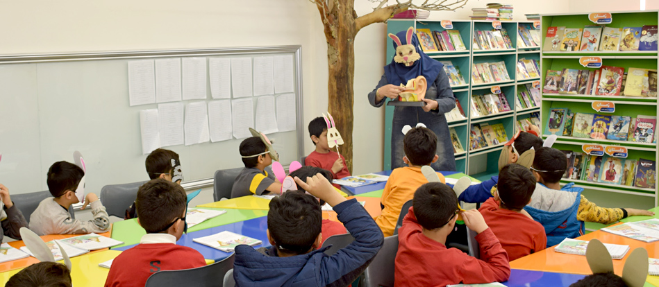 نمایش درس مدرسه خرگوش ها توسط دانش آموزان پایه دوم در کتابخانه