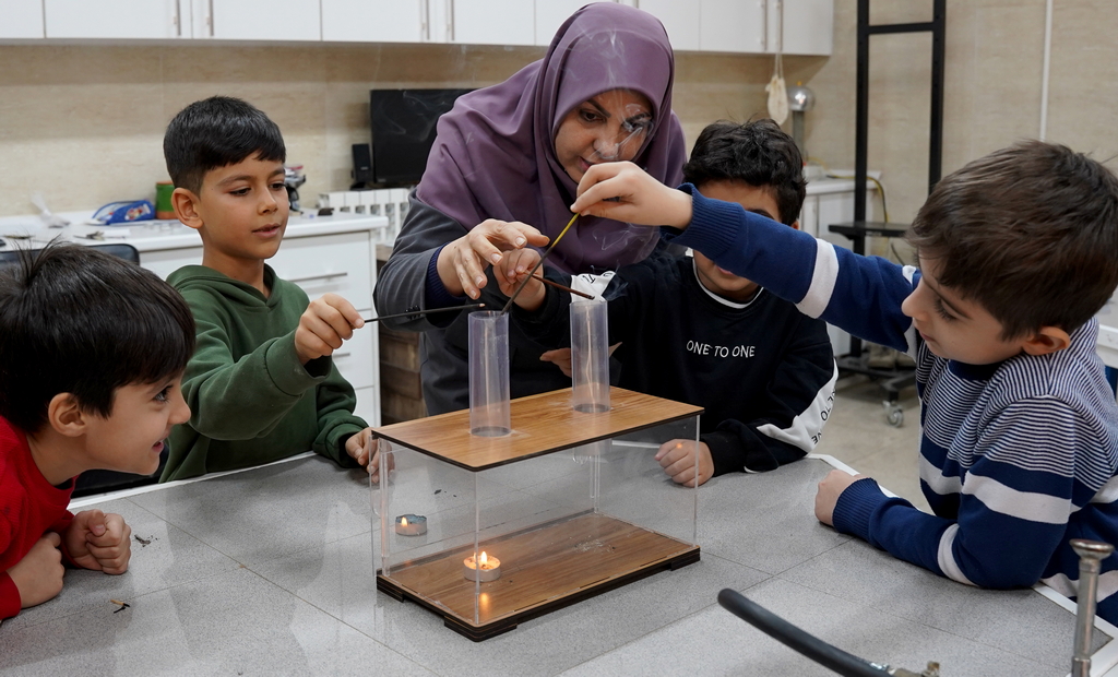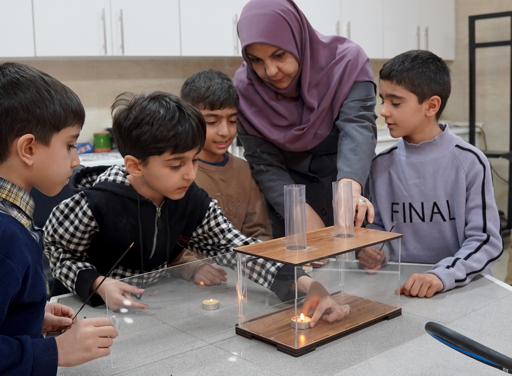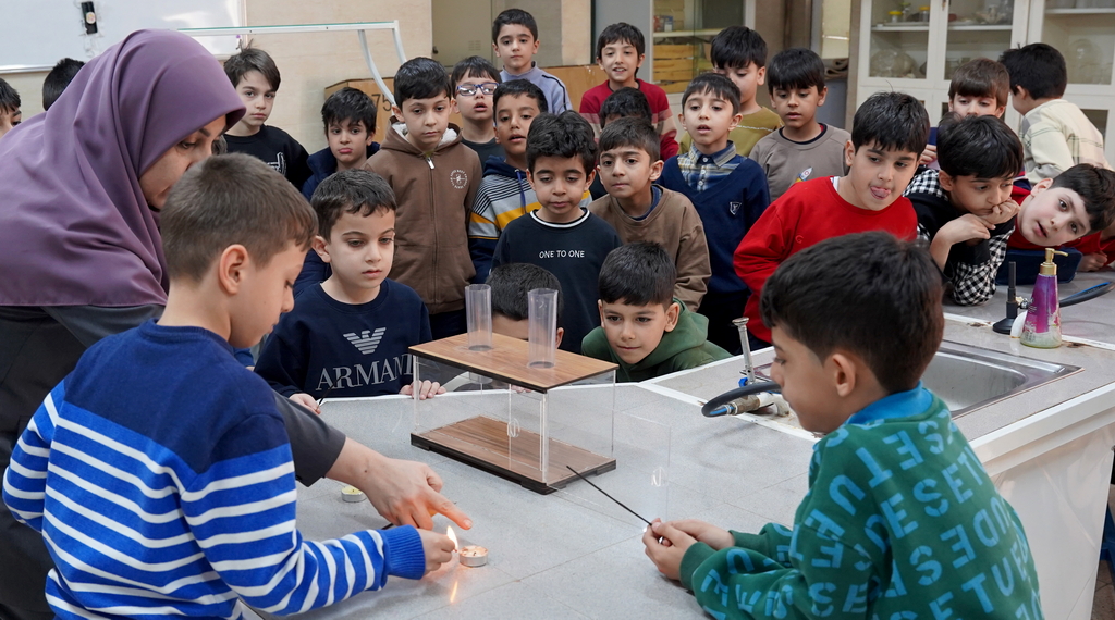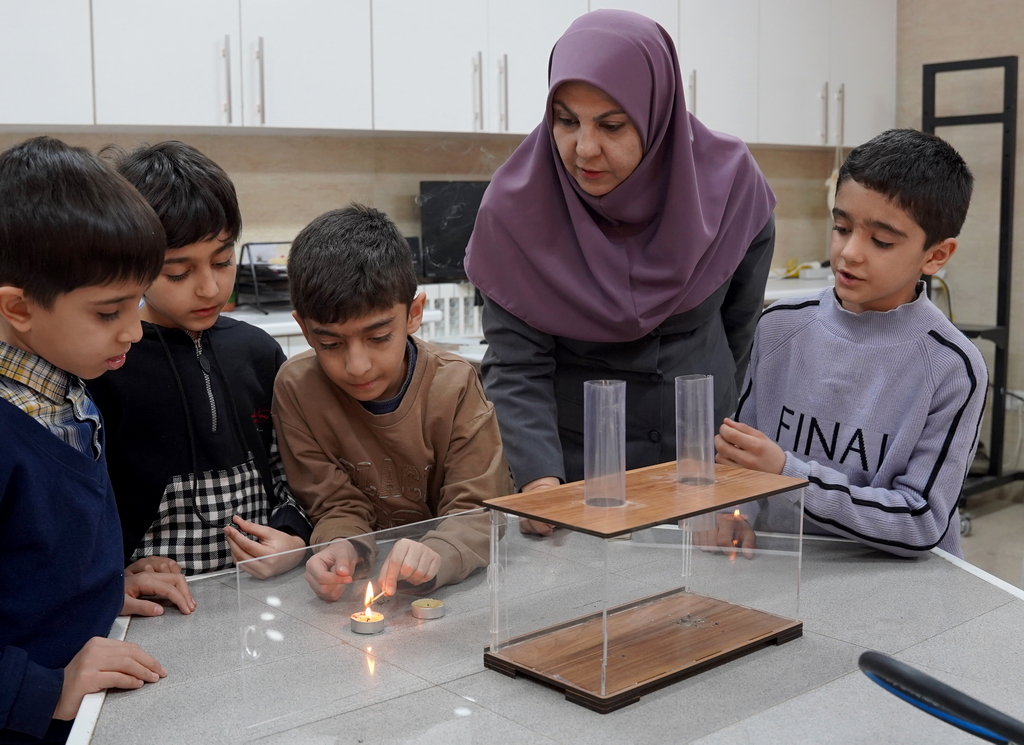 ر این آزمایش، دانشآموزان به صورت عملی مشاهده کردند که باد چگونه به وجود میآید. با روشن کردن شمع در زیر یکی از دودکشهای اتاقک شیشهای، هوای آن قسمت گرم شد ...