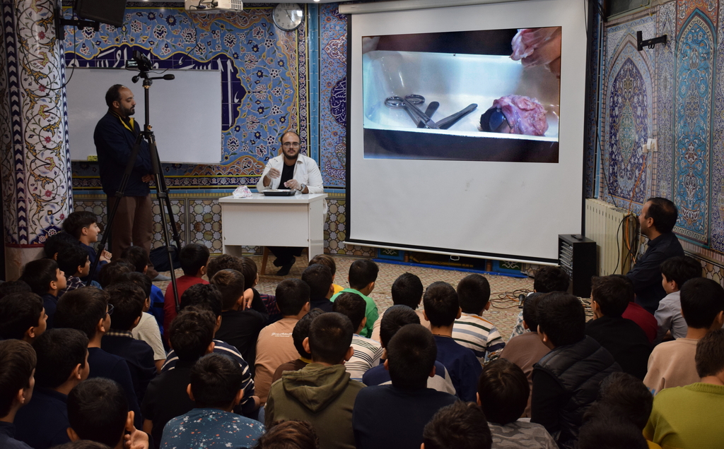 برای تکمیل درک علمی و معنوی، چشم گاو در حضور دانشآموزان تشریح شد تا آنان از نزدیک با ساختار و پیچیدگیهای این عضو حیاتی آشنا شوند. به منظور رعایت نکات بهداشتی و فراهم کردن دید بهتر، فرآیند تشریح از طریق دوربین مداربسته به پردهی دیتا پروژکتور منتقل گردید تا همهی دانشآموزان بتوانند با دقت و آرامش، این فرآیند علمی را مشاهده کنند.